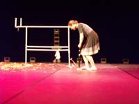 Die Fantasie selbst ist ja schon ein bunter Vogel, was diese drei Spielvögel aber auf die Tanzbretter zauberten war noch eine ungleich größere Fantasienwelt, die erschaffen wurde. Am Anfang war das Ei, das zielstrebig von einem Ende der Bühne zur anderen rollte, und das zunächst zum subtilen Spiel der Darstellerinnen wurde. Hühnerstall. Kuhstall. Eier einsammeln. Kuh melken. Mit viel Spielwitz und hoher Tanzqualität entstanden in kurzweiligen 55 Minuten mit unglaublich erzählerischer Dichte verschiedene Szenen aus dem Landleben, hervorragend und sympathisch umgesetzt von Femke Somerwil, Judy Lijdsman und Annelies van Roie. Dazu gab es auch eine exzellente musikalische Untermalung, die Bewegungsbilder bestens ergänzend. Das beste daran: Jeder konnte sich seine eigenen Stimmungswelten darin aufbauen - der Interpretationen wurden jedenfalls keine Grenzen oder Vorgaben gesetzt. Immer wieder bewundernswert wie das Tanztheaterfestival Szene Bunte Wähne das hohe Niveau über so viele Jahre halten kann und von Jahr zu Jahr für höchst angenehme Überraschungen sorgt. Tanzbilder wie diese - und wie sie am 21. Februar 2009 im WUK in Szene gesetzt wurden - wecken aufgrund bester Spiellaune, sowie mit der als genial zu bezeichnenden Choreographie und deren Tanzsequenzen, die kreativen Impulse von Menschen ab 4 Jahren in angenehmer und vorbildlicher Weise. (Text und Fotos: Manfred Horak)