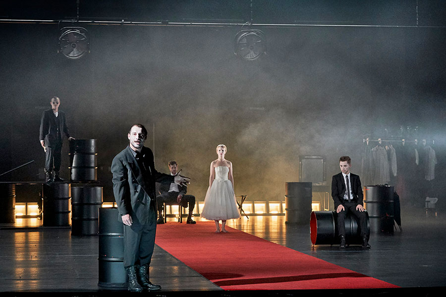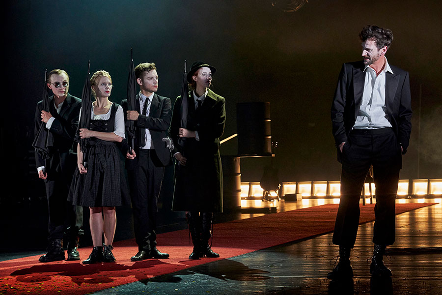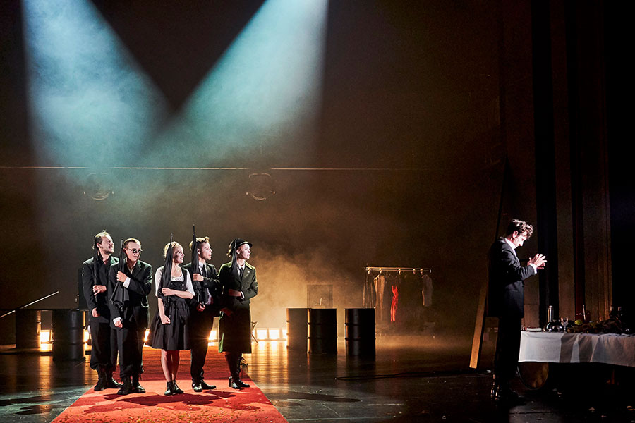 Musik von Beethoven bis Tom Waits, effektvolle Lichtregie und die starken Farben Schwarz und Rot sorgen ebenfalls für Spannung auf der Bühne, die mit wenigen Objekten viele Handlungsmöglichkeiten eröffnet, was das Ensemble voll ausschöpft. Johannes Lepper hat sowohl Bühne als auch Inszenierung gestaltet. Sabine Wegmann unterstreicht mit passenden Kostümen von jägergrün bis slimfit.