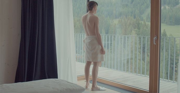 Passivität ist zunächst auch das Verhängnis des Protagonisten, der nicht ohne Grund aus dem kühlen Skandinavien stammt. Er lässt sich eher durch die Reaktionen auf die Handlungen anderer treiben und auch seine starre Mimik als bloßer Beobachter drückt diese Distanz zur Realität aus.Fast könnte diese Atmosphäre in einen Horrorfilm abgleiten. Man meint auch manchmal Anklänge an den schwedischen Film "Höhere Gewalt" (Originaltitel: "Turist", 2014) des Regisseurs Ruben Östlund zu erkennen, doch Bernhard Wenger hat anderes vor: Die Versuchung für Aron kommt in Gestalt einer blonden Schönheit, deren knallrotes Handtuch die pastelligen und vom Kameramann beeindruckend in Szene gesetzten Farbtöne und Lichtspiele im Hotel konterkariert. Wird Aron es schaffen, am Ende auf die Frage "Entschuldigen Sie, ich suche mich selbst" eine adäquate Antwort zu finden und spielt die Natur, die zunächst auch nur passiv als Kulisse dient, schlussendlich eine Rolle? //