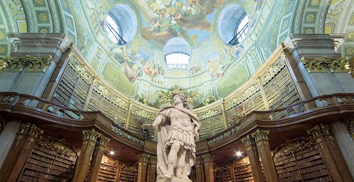 Zwölf kostbare Stücke werdet ihr sein, rückblickend auf 650 Jahre und ausgestellt im Prunksaal der Österreichischen Nationalbibliothek. Die ÖNB feiert 2018 also ihr 650-Jahres-Jubiläum. Dass es 1368 dazu kam, ist Albrecht III. zu verdanken, der von 1365 bis 1395 nicht nur u.a. über das Herzogtum Österreich herrschte, sondern gemeinhin als Förderer, Mäzen und selbst auch als Gelehrter (Mathematik, Astrologie) galt. Ihm war Bildung sehr wichtig und neben seinem Engagement für die Erweiterung und Erhaltung der 1365 gegründeten Universität Wien (1384 stiftete er das Collegium ducale, das erste eigentliche Universitätsgebäude), geht auch der Ausbau des Stephansdoms auf ihn zurück, sowie die Initiierung der Österreichischen Chronik von den 95 Herrschaften, die wesentlich das Geschichtsbild der Habsburger in späteren Jahrhunderten beeinflusste. Darüber hinaus war Albrecht III. auch ein Büchersammler, und so stammt auch das älteste für die Nationalbibliothek nachweisbare Buch (Evangeliar des Johann von Troppau) aus seinem Besitz. Ganz in Gold geschrieben, mit aufwändigem Bildschmuck versehen und von einem Prachteinband umgeben, zählt es zu den wertvollsten Beständen der Österreichischen Nationalbibliothek. Am Ende der Handschrift, die alle vier Evangelien des Neuen Testaments versammelt, führt der Schreiber und Buchmaler nicht nur seinen Namen und seine kirchlichen Ämter an, sondern auch das Jahr, in dem er das Werk vollendet hat: 1368. Die herausragende Bedeutung dieser Handschrift, die repräsentativ für die Anfänge der habsburgischen Büchersammlungen ist, begründet ihre Bezeichnung als "Gründungscodex" der kaiserlichen Hofbibliothek und damit auch der Österreichischen Nationalbibliothek.