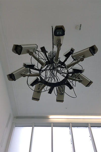 Sowie das Betreten des Künstlerhauses erfolgt, vollzieht sich sogleich der Akt der Immersion. "Überwacht" von den Kameralinsen der Installation "Asymmetric Love" des Künstlers Addie Wagenknecht wird im Zuge der VR-Installation "Du musst dein Leben ändern" von Manuel Roßner mittels VR-Brille vom klassischen in den digitalen Ausstellungsraum gewechselt. In seiner Neuproduktion lässt Roßner die Veränderung der räumlichen Wahrnehmung in der virtuellen Welt erfahren und eröffnet eine künstliche Galerie. Vorbei an den Lentikular-Drucken [auch Linsenrasterbild; Anm.] "Body Positive" von Olga Fedorova, die durch gegebenen Kippeffekt dreidimensional anmuten, schreitet man weiter in den Hauptraum der Ausstellung, wo der Blick auf eine weitere Konstruktion Wagenknechts gelenkt wird. Bei "XXXX.XXX" reihen sich fünf Schaltplatten an der Wand, die durch eine Unzahl von Kabeln miteinander verbunden sind. Wagenknecht weist hier auf die vernetzte Welt und den sich stetig im Umlauf befindenden Datenaustausch hin.