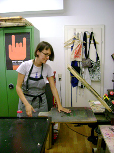 Zum Bedrucken der Baumwoll-T-Shirts werden ausschließlich Acryl-Farben verwendet. Daher kann man zwar nicht auf Plastik drucken, aber Acryl-Farben sind umweltfreundlich. Außerdem: Wer will schon ein Plastik-T-Shirt? Alle T-Shirts werden ausschließlich im Siebdruckverfahren gedruckt. Beim Siebdruck bleibt die Farbe wirklich am T-Shirt und bleicht nicht aus. Es wird alles händisch bedruckt. Anna und Steve arbeiten beide im Bereich Grafik Design. Klar, dass sie am Liebsten eigene Motive auf T-Shirts drucken. Aber wer eigene Designs oder Texte hat, kann diese ab zehn Stück im MotMot drucken lassen. Im Geschäft kann man aus einer Reihe witziger Motive und kreativer Einfälle wählen. So gibt es die „Future City“, die Zukunftsstadt, diverse Tiermotive, Icons und vieles mehr. Laufend kommen neue Motive dazu. Auch Poster und Buttons kann man kaufen.
