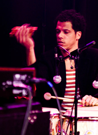 andere Instrumente sowie zwei farbige Sängerinnen neben Sänger Stef Kamil