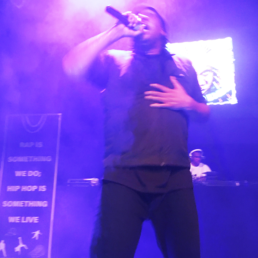KRS-One, a.k.a. The Teacher started the concert with a big bang: Energetic like a Duracell bunny, he spit bars like his life depended on them and constantly moved from one side of the stage to the other, engaging the whole audience, from left to right, front to back, repeatedly asking whether Hip-Hop was here or rather over here (pointing to one side first and then the other). It was great to see how he also engaged his son in his performance and how both communicated and understood each other non-verbally. In good old KRS-One tradition, he shook his fans’ hands right in the beginning of his concert acknowledging everyone who was able to get his attention. KRS-One delivered the Hits the audience had longed for, but also impressed the crowd with some Freestyles that could not have been any wittier, sharper or more fiery. It would not have been a KRS-One concert without him trying to convey a message to his audience: He emphasized the crucial role of knowledge and how you do not need to be an academic to get access to knowledge. He named school drop-outs now on top of the world, who have made it so far because they found a way to educate themselves.