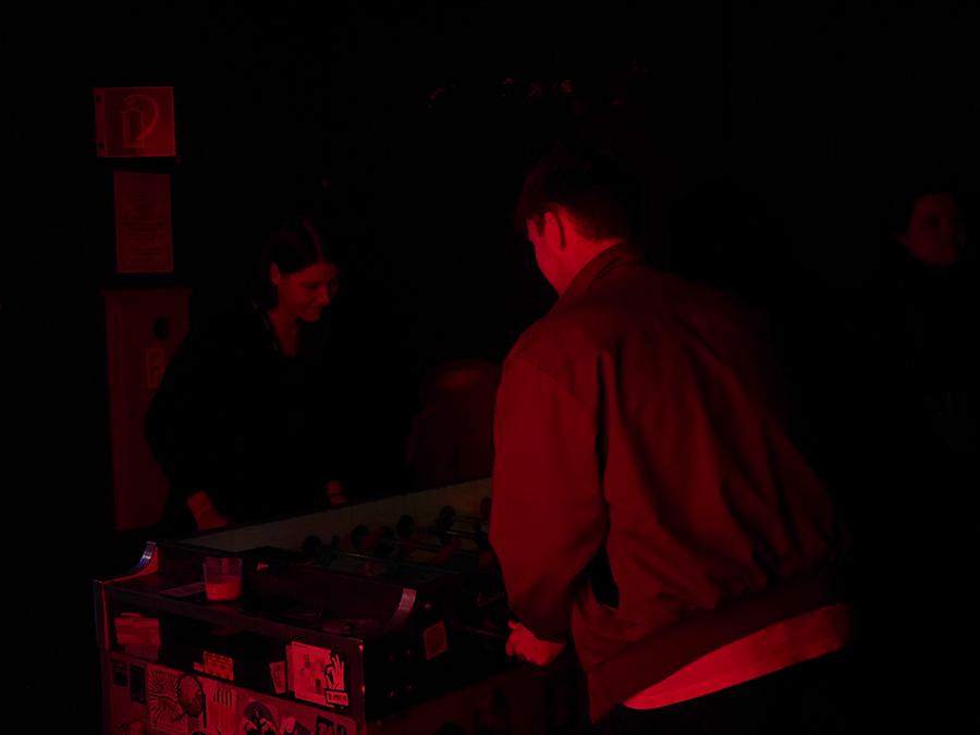 Die Band ist gekleidet, wie eine Gruppe Tanzwütiger aus einem 1980er Jahre Aerobic Video, Shorts und Sportshirts in grellen Farben und Mustern und machen damit schon Lust aufs Tanzen, noch bevor sie überhaupt mit ihrem Auftritt begonnen haben. Es ist schon ziemlich lustig, dass die Band in einem Raum spielt, der ja eigentlich zu einer Schule gehört. Die Bandmitglieder sehen in ihren Outfits nämlich aus wie Charaktere aus einem High School Film, die Sängerin Ragnhild Fangel wie die Homecoming Queen, der Drummer wie der Geek, der Gitarrist wie der Jock, und der Bassist wie der Kapitän der Football Mannschaft. Der Pop Punk der Band klingt dann auch sehr nach 1980ern, mit einfachen, eingängigen Riffs und Lyrics und Beats, die selbst dem größten Melancholiker im Publikum ein Lächeln ins Gesicht zaubert.