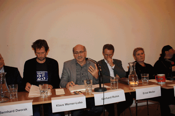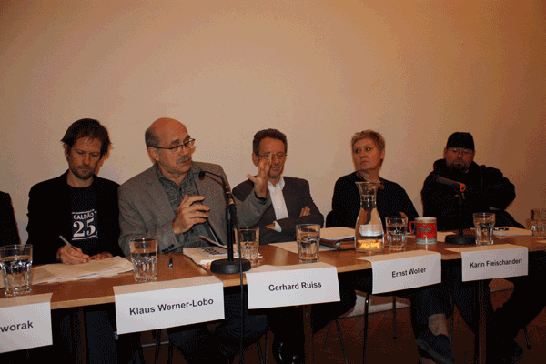 In der ersten Runde der Literaturförderungsenquete am 22.11.2011, die zur Gänze in den ersten drei Episoden unserer Podcast-Reihe "Kunst.Kultur.Diskurs" zum Nachhören sind, wurden Erwartungen an die Kulturpolitik im Bereich der Literatur formuliert. Beim zweiten Abend der Literaturförderungsenquete am 28.11.2011 auf Initiative von IG Autorinnen Autoren und IG Kultur Wien ging es darum, wie die Kulturpolitiker der Stadt Wien zu Veränderungen stehen, welche eigenen Vorstellungen sie haben und welche konkreten Schritte sie setzen wollen.
