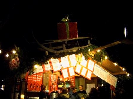 Mitten im Campus der Universität Wien erstreckt sich ein verwinkelter, sternförmig angelegter Adventmarkt, zugeschnitten auf die Zielgruppe Studenten und Jungfamilien. Allein der Ort bestimmt schon sehr stark die Besucherklientel, doch auch das Angebot, welches sich vorwiegend auf Punsch- und Glühweinvariationen bezieht, bestärkt den Fokus dieses Marktes.