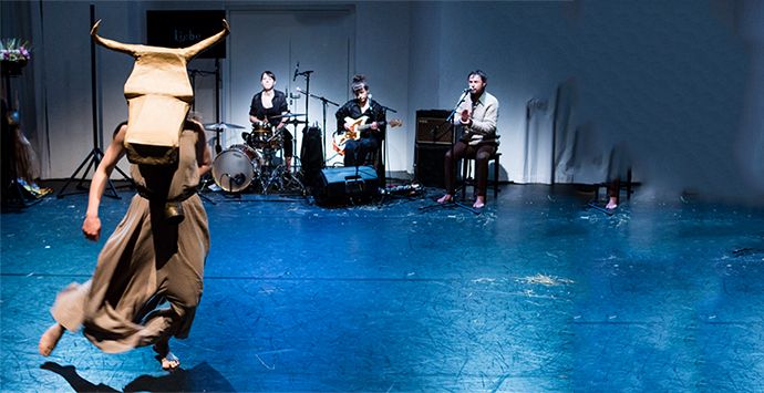 Dies ist leider nicht das einzige Klischee, das etwas platt wirkt. Zu glauben, in fein säuberlicher Standardsprache jedes k als ck auszusprechen, würde genügen einen tirolerischen Dialekt als authentisch wirken zu lassen, ist eine äußerst naive Vorstellung. Der Tiroler sagt auch nicht Banane-k. Die Kompositionen von Clara Luzia konnten dieses ck-Störgeräusch jedoch gut ausmerzen. Der Mix aus authentischem Tiroler Folklore, urigen Naturgesängen, Bodypercussion und elektrischem Gitarrensound ergaben eine durchaus passende und aufregende musikalische Begleitung. Und so ließen die mehr als authentischen Kuhimitationen und die multifunktional genialen Kostüme der 70-minütigen Vorstellung das Publikum mit Begeisterung und vielen schmunzelnden Momenten zurück. //