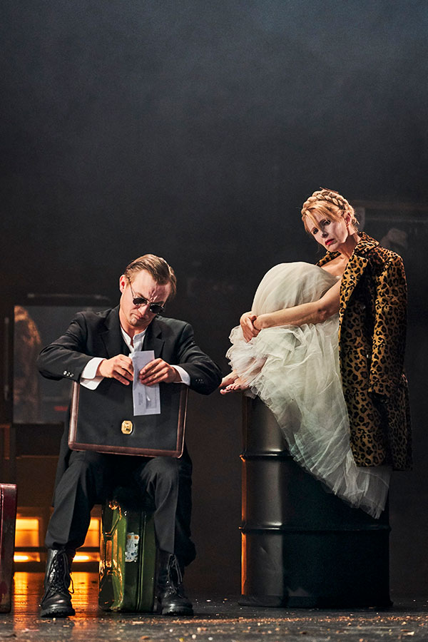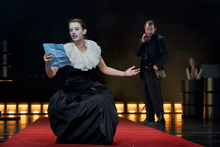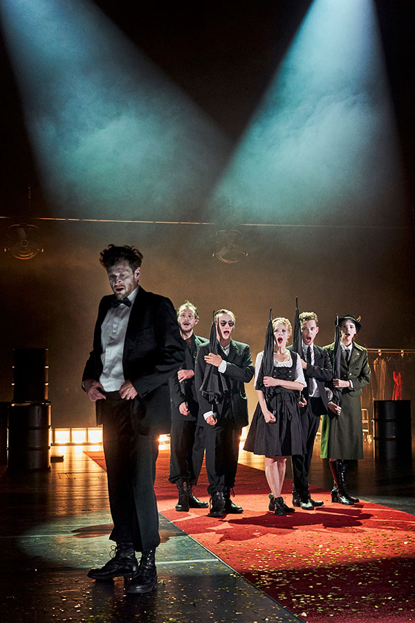Musik von Beethoven bis Tom Waits, effektvolle Lichtregie und die starken Farben Schwarz und Rot sorgen ebenfalls für Spannung auf der Bühne, die mit wenigen Objekten viele Handlungsmöglichkeiten eröffnet, was das Ensemble voll ausschöpft. Johannes Lepper hat sowohl Bühne als auch Inszenierung gestaltet. Sabine Wegmann unterstreicht mit passenden Kostümen von jägergrün bis slimfit.