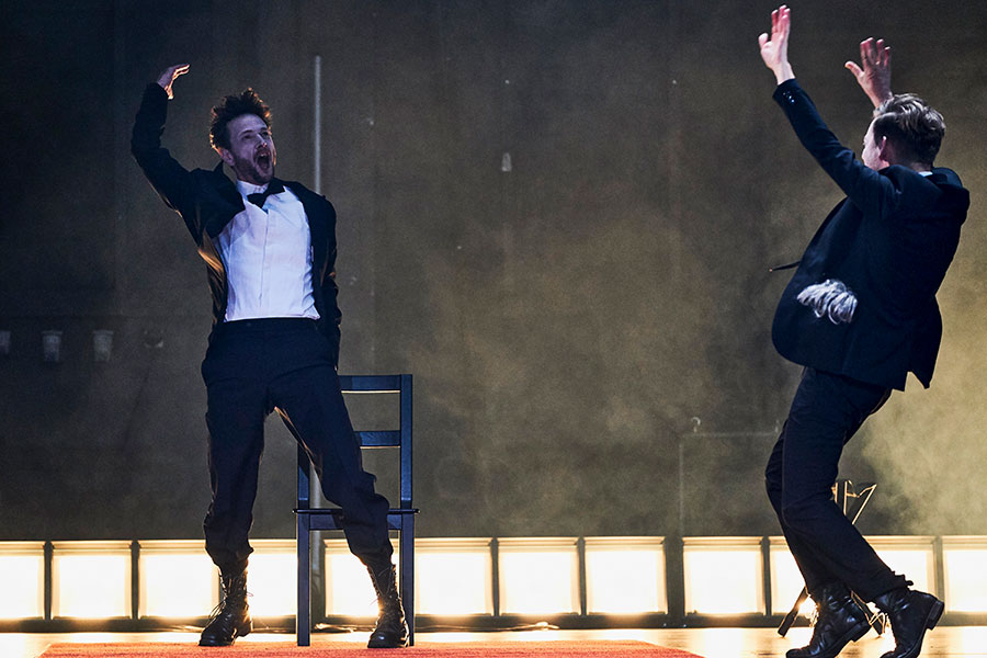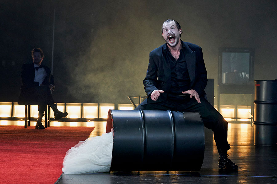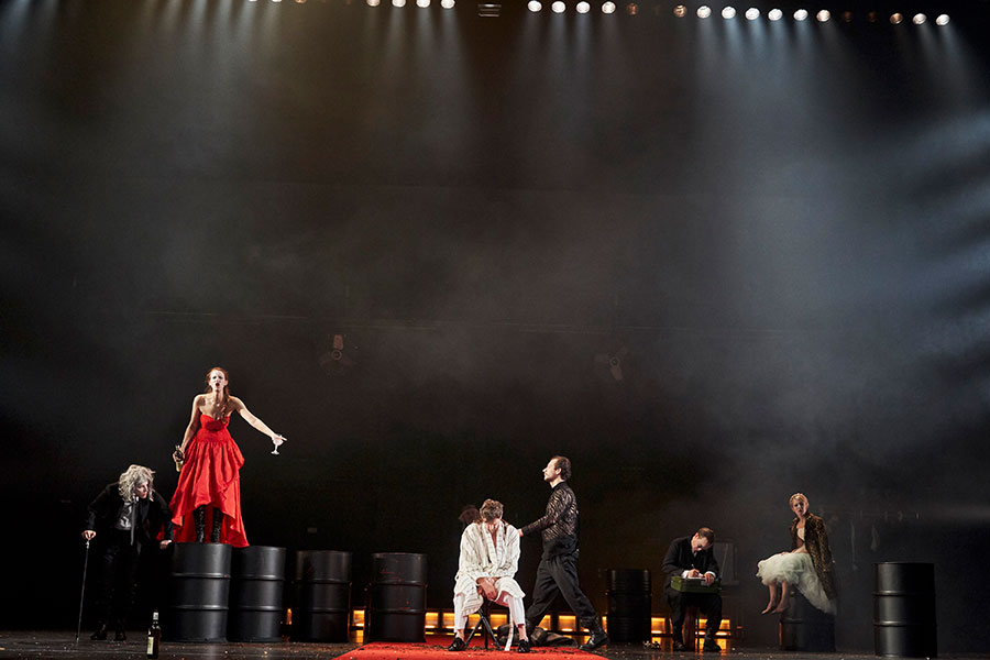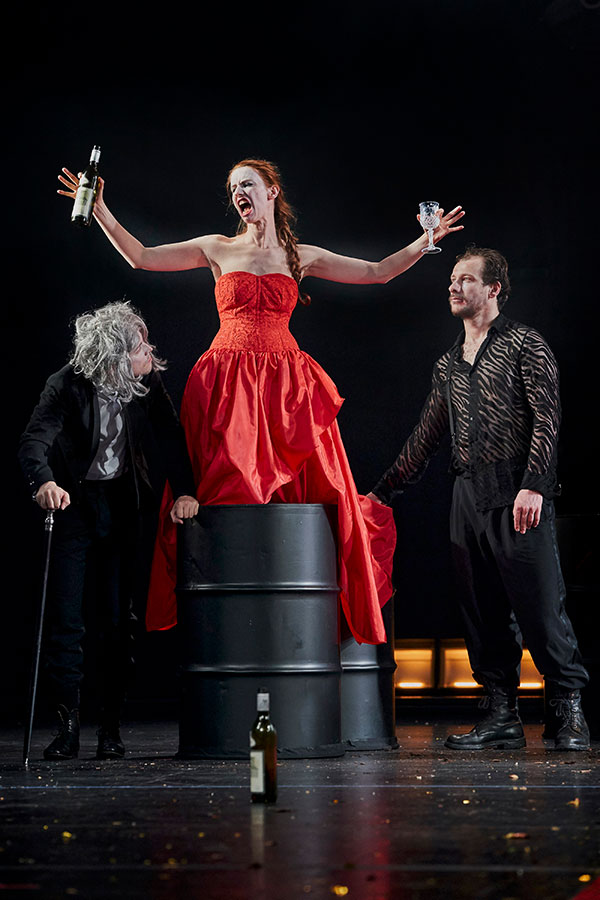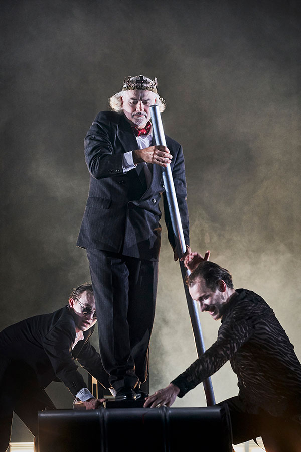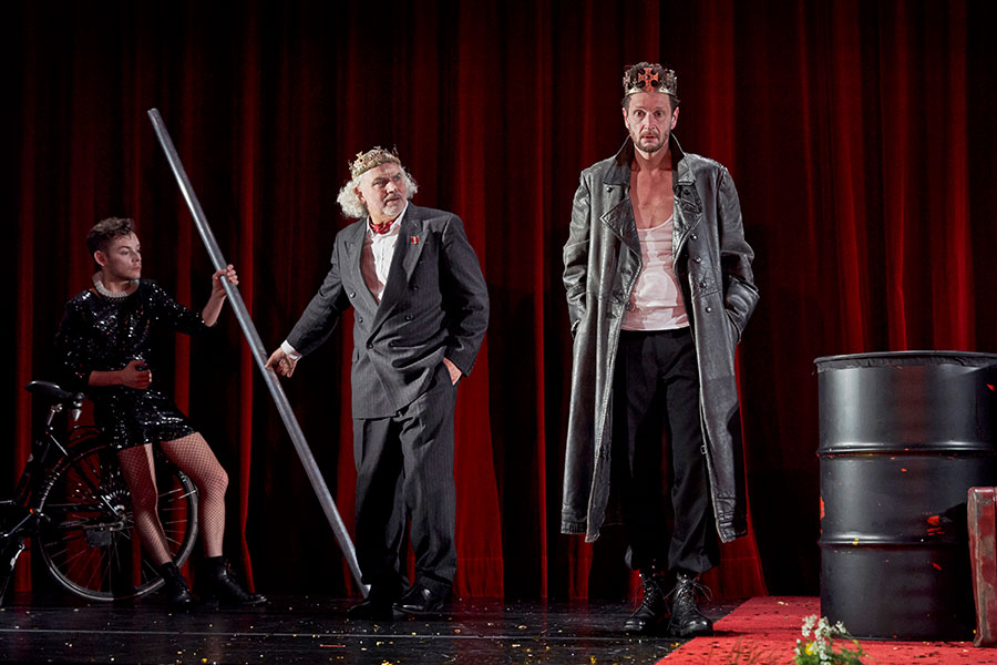 Mit Balanceakten auf Fäßern, Röhnradrolle, clownesk-bizarrem Grimassieren und Artikulieren beginnt die Inszenierung des Klassikers "König Ottokars Glück und Ende" nach Franz Grillparzer. Damit ist von Beginn an das Tempo des Abends festgelegt. Immerhin soll das Publikum knapp drei Stunden lang bei der Sache und im Vorarlberger Landestheater bleiben.