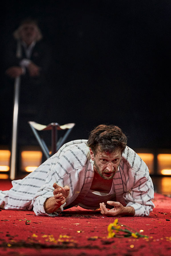 Der Rückgriff auf Klassiker zeigt oft an, dass große Fragen verhandelt werden sollen. Derzeit beschäftigt Europa die kommende Wahl, Brexit, Demokratieabbau, Populismus und Rechtsruck. Der Rückblick auf die Europäische Geschichte mit all ihren sich dauernd ändernden Grenzverläufen, Verbündeten und Kriegsparteien, exemplarisch dargestellt anhand König Ottokar und dessen listigem Kontrahenten Rudolf von Habsburg (Hansa Czypionka), wäre graphisch dargestellt ein dichtes Netz schwarzer Grenzlinien und ein einziges blutrotes Schlachtfeld. //