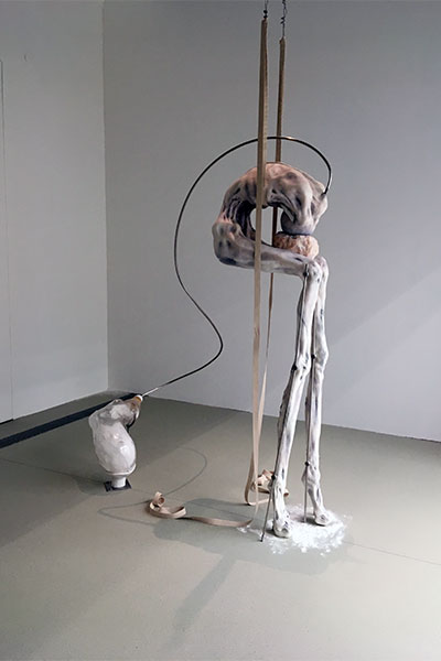 Sowie das Betreten des Künstlerhauses erfolgt, vollzieht sich sogleich der Akt der Immersion. "Überwacht" von den Kameralinsen der Installation "Asymmetric Love" des Künstlers Addie Wagenknecht wird im Zuge der VR-Installation "Du musst dein Leben ändern" von Manuel Roßner mittels VR-Brille vom klassischen in den digitalen Ausstellungsraum gewechselt. In seiner Neuproduktion lässt Roßner die Veränderung der räumlichen Wahrnehmung in der virtuellen Welt erfahren und eröffnet eine künstliche Galerie. Vorbei an den Lentikular-Drucken [auch Linsenrasterbild; Anm.] "Body Positive" von Olga Fedorova, die durch gegebenen Kippeffekt dreidimensional anmuten, schreitet man weiter in den Hauptraum der Ausstellung, wo der Blick auf eine weitere Konstruktion Wagenknechts gelenkt wird. Bei "XXXX.XXX" reihen sich fünf Schaltplatten an der Wand, die durch eine Unzahl von Kabeln miteinander verbunden sind. Wagenknecht weist hier auf die vernetzte Welt und den sich stetig im Umlauf befindenden Datenaustausch hin.