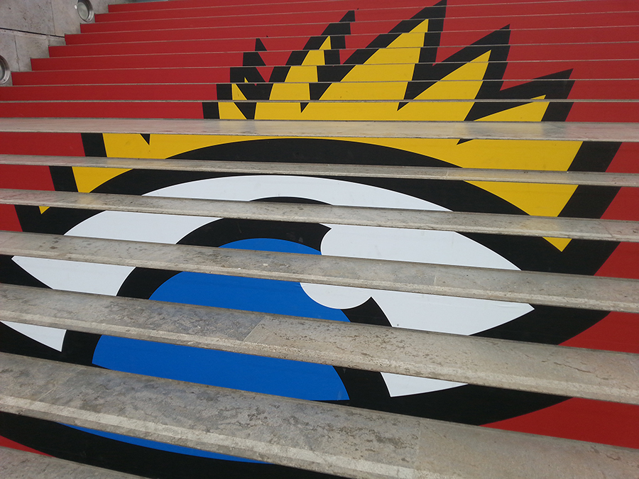 Wer die Stufen zu den Messehallen in Leipzig hinaufstieg, konnte es step by step und weiß auf schwarz lesen: "Für das Wort und die Freiheit", Hashtag darf nicht fehlen: #FreeTheWords.