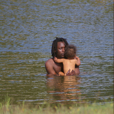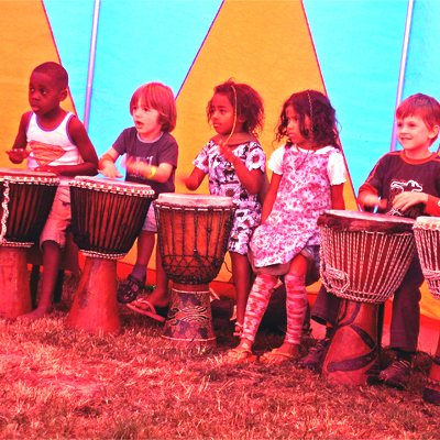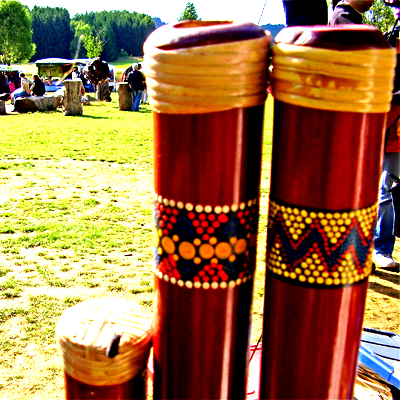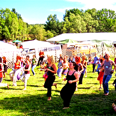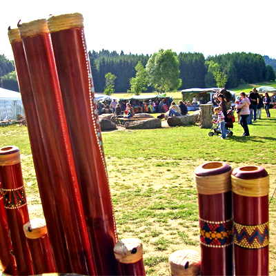 Auf der anderen Seite des Afrikadorfes fand man hingegen das Workshop-Zelt für Musik- und Tanzinteressierte. Dort wurden für Kinder wie für Erwachsene diverse Trommelworkshops angeboten, bzw. (neben dem Zelt) Afro-Tanz zelebriert. Kinder unterschiedlichen Alters wurden zusammengetrommelt um mitzutrommeln und so gewissermaßen die Basics zu lernen (was aber erst Sinn für Kinder ab 5 macht). Zwischen Workshop-Zelt und Afrikadorf liegt das freie Festivalgelände, durchsät mit einigen Verkaufsständen, bei denen es immer wieder mal auch zu (mehr oder weniger) spontanen Trommel-Sessions kam. Das größte Klischee während der Festivaltage lag im Wetter begründet. Saukalt, verregnet, heftige Winde. Aber auch: Sonnenschein, Badewetter. Waldviertel eben.