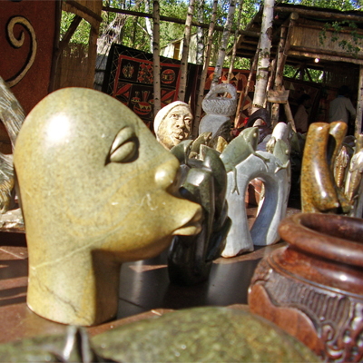 Anders als der Publikumsrenner „Afrika! Afrika!“ von André Heller, das schaubudenmäßig in Klischees, Perfektion und Sterilität zu ersticken droht, bietet das Kasumama Afrika Festival ein weitestgehend authentisches Bild des Kontinents, auch, weil das Veranstaltungsteam auf Glanz und Pomp verzichtet, auch, weil das Festival mit viel natürlichem Charme so manche Mängel in den Hintergrund drängen kann. Man sollte sich schon sehr viel Zeit nehmen, und nach Möglichkeit zumindest zwei volle Tage beim Festival sein, um dem Zauber zu begegnen. Im Afrikadorf z.B. ging es sehr lässig und überaus entspannt zu – „Afrika erleben“ war weitestgehend das Motto – es tat sich nicht sehr viel, das dafür umso intensiver. Eine herrlich friedliche Stimmung ging von diesem Afrikadorf aus, quasi ein Magnetpunkt des Festivals. Kinder konnten T-Shirts bedrucken, konnten töpfern, oder ganz einfach die im Waldviertel legendären überdimensionalen Steine besteigen. Konträr die Workshop-Leiter: der gute Mann, verantwortlich für T-Shirt-Bedruckung mit Kindern, war ob des regen Zulaufs der Kinder leider ziemlich überfordert. Workshop war das jedenfalls keiner. Ganz anders Patrick Edwards aus Zimbabwe, der mit den Kindern Batik-Arbeiten machte und mit den Kindern töpferte. Hier merkte man die Arbeitserfahrungen sehr deutlich und auch seinen ungespielten Zugang Kindern gegenüber. Er zeigte vor, erklärte, half den Kindern und ließ ihnen gleichzeitig ihre künstlerische Freiheit. Schade nur, dass man nie genau wusste, wann welcher Workshop begann.