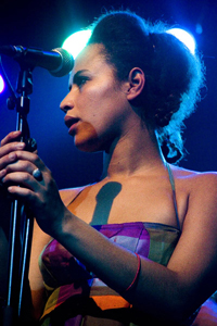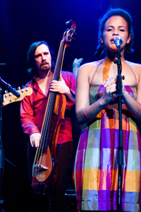 andere Instrumente sowie zwei farbige Sängerinnen neben Sänger Stef Kamil