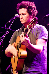 nur mit einer umgeschnallten Gitarre alleine die Bühne betrat, wurde schnell