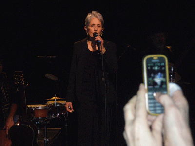 Joan Baez war mit wenigen Ausnahmen ("Diamonds & Rust") nie eine große Liederschreiberin, aber sie hatte immer ein feines Gespür für gute Songs von anderen Künstlern, die sie sehr erfolgreich gecovert hat. "Suzanne" (Leonard Cohen) und ihr einziger US-Top Ten Hit The Night They Drove Old Dixie Down (The Band) zählten auch in Wien zu den großen Publikumsfavoriten. Dieser Linie ist sie bis heute treu geblieben. Auf ihrem aktuellen Album "The Day After Tomorrow", benannt nach dem Song von Tom Waits und produziert von Alternative Country-Fixstern Steve Earle, finden sich Songs von Elvis Costello, T-Bone Burnett, Eliza Gilkyson oder Patty Griffin. Leider gab es von der neuen CD nur zwei Songs zu hören. Als kleine Aufmerksamkeit an die österreichischen Fans waren dafür auch zwei deutschsprachige Lieder im Programm, eines davon war der Antikriegs-Klassiker "Sag Mir Wo Die Blumen Sind" (Original: "Where Have All The Flowers Gone" von Pete Seeger).