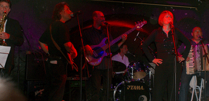 Gegen Ende des Konzerts schwebte Novi Sad flügelleicht davon, In The Air - Somewhere. Eine gute Viertelstunde lang draufhalten, oben bleiben, nur nicht nachgeben. Es gibt ja nix zu verlieren, daher immer schön fließen lassen, "feel the easiness / by floating through the air / and I will feel a new strength / by turning my back on the earth". Zu diesem Zeitpunkt haben sich die fünf Musiker - Evelyn Blumenau (Gesang, Mundharmonika), Paris 1914 aka Klaus Schuch (Gitarre), Manfred 'Moonday' Scharf (Akkordeon), Robert 'Wurli' Worel (Bass), St. Stephan (Schlagzeug) - längst schon in ihrem eigenen Soundsystem gefunden, in ihrer Welt der Ahnung und Gefühle. An diesem, ihrem Jubiläumsabend, erreichte die Band einen Reichtum, der so überhaupt nichts mit den gängigen Kapitalismusmechanismen zu tun hat. Diese Verbreitung von Magie hatte mehrere Gründe, der gewichtigste war sicherlich die Verwebung ihres Gesamtschaffens in deren Zeitgefühl von heute (was auch implizierte, das z.B. Lieder vom ersten Album, "Nuts and Berries", doppelt so lang dauerten wie im Original, da halb so schnell gespielt). Ein anderer war (zumindest für den Autor dieser Zeilen) das Zitieren aus der Musikgeschichte (Van Morrison, The Doors, Nick Drake), das sich - partiell - durch den ganzen Abend zog, innerhalb ihres eigenen Schaffens wie in "Hagazussa" [aus dem Album Rise; 2008; Anm.] oder anhand von Cover-Versionen. "Pink Moon" von Nick Drake kam - im Gegensatz der Langsamkeit ihrer älteren Lieder - fast schon wie eine Springflut daher und "When the Music's Over" von The Doors (mit der ewigen Gesangszeile "We want the world and we want it...NOW!") geriet schlicht und einfach zum Triumph. Erstaunlich, welche Töne hier Klaus Schuch seiner elektro-akustischen Gitarre hervorzulocken wusste, welchen psychedelisch ziselierten Orgel-Feinschliff Scharf aus dem Akkordeon balgte und wie sehr Blumenaus Gesang dem Lied neue Facetten abringen konnte. Gewinnbringend freilich auch die neuen Versionen älterer Lieder aus Eigenanbau Marke Novi Sad, wie in etwa "Settimana Prossima" (aus "Super oder Normal"; 1994) oder der Titelsong von "Europe's Other Side" (2003). Letzt genanntes mit Gastsängerin Katharina Wech von der Band jazz:mess, die mit Evelyn Blumenau bei mehreren Liedern bestens harmonierte, so u. a. auch bei "Pink Moon". Apropos Gäste: Da gab es einige, so neben Wech natürlich Erik 'Lützi' Glaser an der E-Gitarre, Josef Resch am Keyboard, Alexander Lehner am Saxofon und Stefan Tomaszovits an der Trompete. Die personelle Vergrößerung bedeutete auch ein noch schärferes Klangbild, was manchen Liedern besonders gut tat wie "Miracles", "Stereo Love" und "Majestic" mit Glasers Stromgitarrenwürzung oder das verhexende "Hagazussa" mit dem Bläserduo Tomaszovits und Lehner, sowie der große Pop-Moment in "Paulina" mit Wechs stimmlicher Sogwirkung und dem Keyboard-Spiel von Resch. Als süße Zugabe gab es eine Jubiläumstorte, was jedoch nachhaltig bleibt ist das Gefühl eine sehr gute Band aus Österreich bei einem sehr guten Konzert erlebt haben zu dürfen. (Text: Manfred Horak; Fotos: Novi Sad)