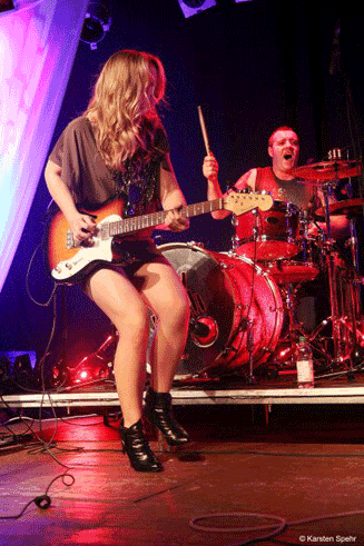 Die formidablen Songs von Wilde, Fish und Taylor klingen wie aus einem Stück, die beiden Erstgenannten brillieren daneben auch mit packenden Gitarren-Duellen, die technisch keine Wünsche offen lassen. Cassie Taylor hält sich am Bass zwar etwas zurück, doch auch ihre Solo-Spots am Mikro wie z.B. eine a-capella Version von Nat King Coless "Mona Lisa" machen Lust auf mehr. Vor allem im zweiten Set schraubt sich die Stimmung auf der Bühne explosiv in die Höhe und kulminiert bei den Zugaben im krachenden AC/DC-Cover "Highway To Hell". Zum Schluss laden die drei Girls noch Meena Cryle und Chris Fillmore (die 2010 am Blues Caravan teilgenommen haben) zu einer kleinen Jam-Session auf die Bühne. Zu diesem Zeitpunkt sind die Zuschauer schon von ihren Stühlen aufgesprungen und feiern begeistert mit. So geht ein ein wunderbarer Abend mit drei tollen, jungen Blueserinnen zu Ende. Von diesen drei Blues-Frauen wird man sicherlich noch viel hören. Bin schon jetzt gespannt, was der Blues Caravan 2012 bringt. (Text: Robert Fischer; Fotos: Karsten Spehr)