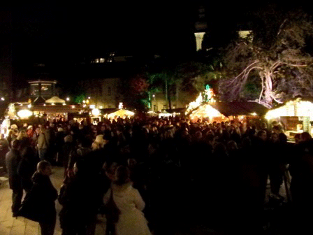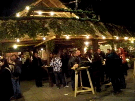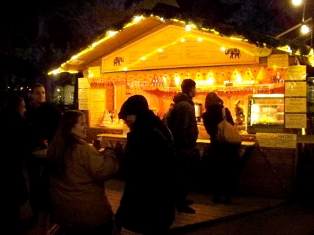 Mitten im Campus der Universität Wien erstreckt sich ein verwinkelter, sternförmig angelegter Adventmarkt, zugeschnitten auf die Zielgruppe Studenten und Jungfamilien. Allein der Ort bestimmt schon sehr stark die Besucherklientel, doch auch das Angebot, welches sich vorwiegend auf Punsch- und Glühweinvariationen bezieht, bestärkt den Fokus dieses Marktes.