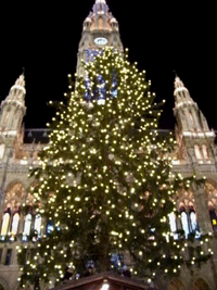 Ein Highlight - im wahrsten Sinne des Wortes - ist auch die Weihnachtsbeleuchtung am und um den Christkindlmarkt. Spielt sich der Konsum-Wahnsinn eher im Zentrum des Parks, direkt vor dem Rathausplatz ab, so stellen die seitlichen Wege eine Ruhe-Oase, lediglich beleuchtet durch Tonnen von Baumschmuck, dar. Auch eine Liliput-Bahn fährt an diesen etwas abseits gelegenen Wegen entlang: die Herzerl-Bahn Einstiegsstelle direkt vorm Herzerl-Baum. Weitere Renner sind der immense Weihnachtsbaum vor dem Haupteingang des Rathauses und der wunderschön kitschige Adventkalender, dessen Fenster einfach über die Fenster des Rathauses montiert wurden.