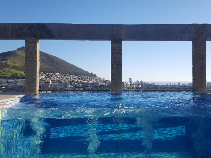 Dachterrasse mit wunderschönem Ausblick auf den Ozean und Signal Hill